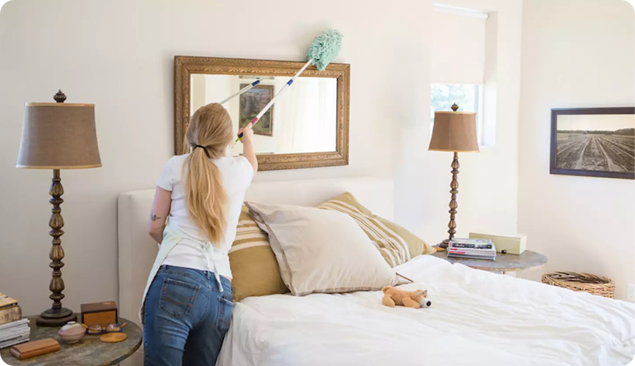 Our bedroom cleaning service ensures a fresh, organized, and comfortable sleeping space. The service includes dusting and wiping of all accessible surfaces, cleaning of furniture, bedside tables, and switches, vacuuming or mopping of floors, and removal of cobwebs. Beds are neatly made (linen change upon request), mirrors are cleaned, and trash is emptied to leave your bedroom spotless and relaxing.