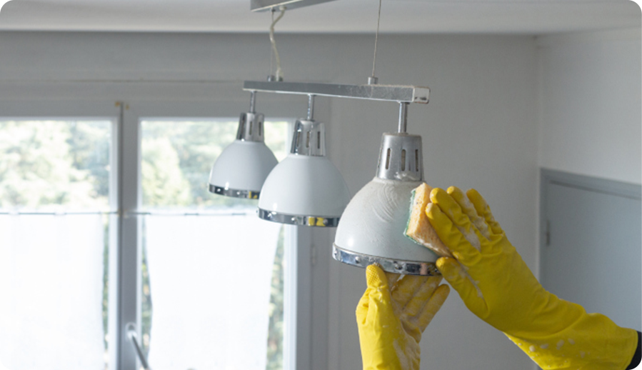 Our ceiling fixtures detailing service provides a deeper clean for light fixtures, fans, and other ceiling-mounted elements. Using safe cleaning solutions, we remove dust, grime, and buildup from every surface. This not only restores the fixtures’ shine but also improves indoor air quality and overall room brightness.